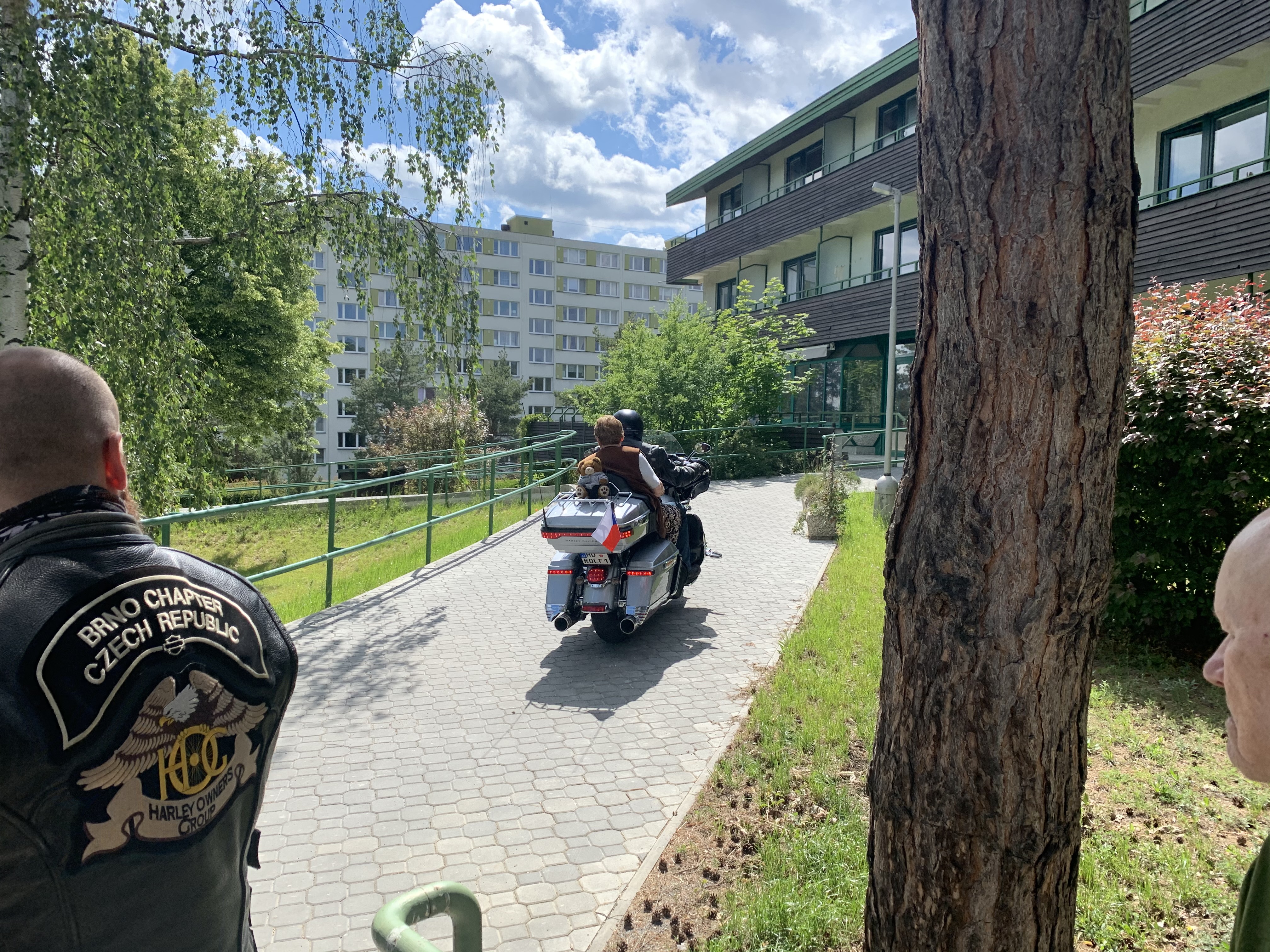 Dne 2.6. 2020 členové HARLEY DAVIDSON BRNO vjeli do areálu domova na nablýskaných mašinách.