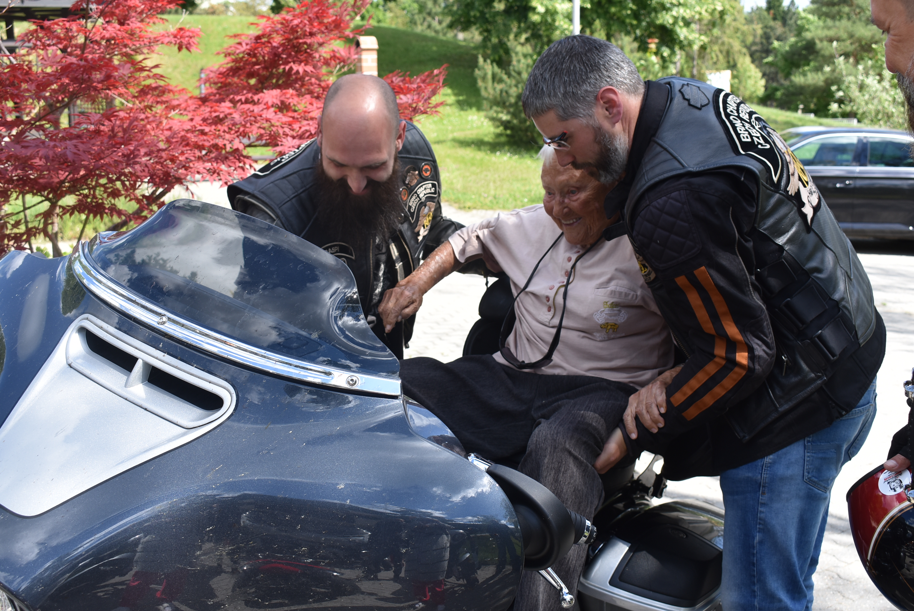 Věk, ani zdravotní omezení, nebylo důvodem si nezkusit jízdu na harley. Chlapi z nablýskaných strojů se změnili ve zkušené pečovatele, kteří s úsměvem vysadili na motorku každého, kdo chtěl, a že jsme si to užívali všichni, včetně zaměstnanců, dokládají fotografie.